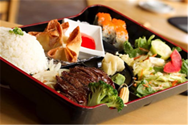 Lunch Box Served w. 4 pcs Shumai, California roll & egg roll.